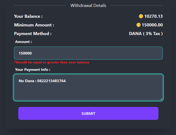 * Click Withdraw